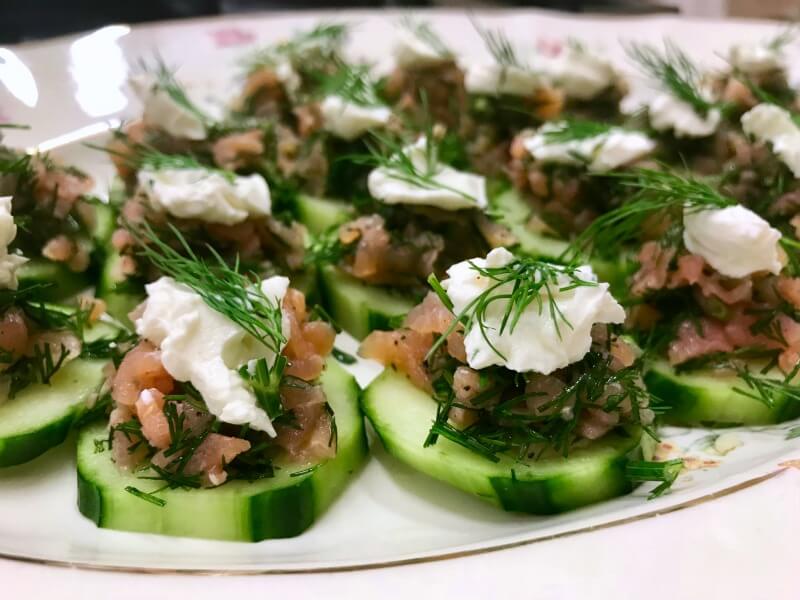 Σολομός με αγγούρι και σκορδοβούτυρο.